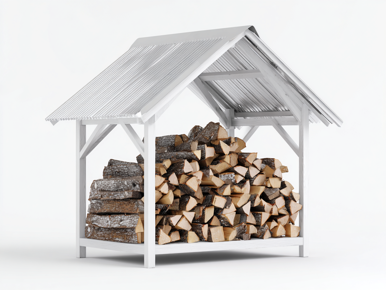 Toiture protectrice et espace ouvert facilitant la ventilation du bois.